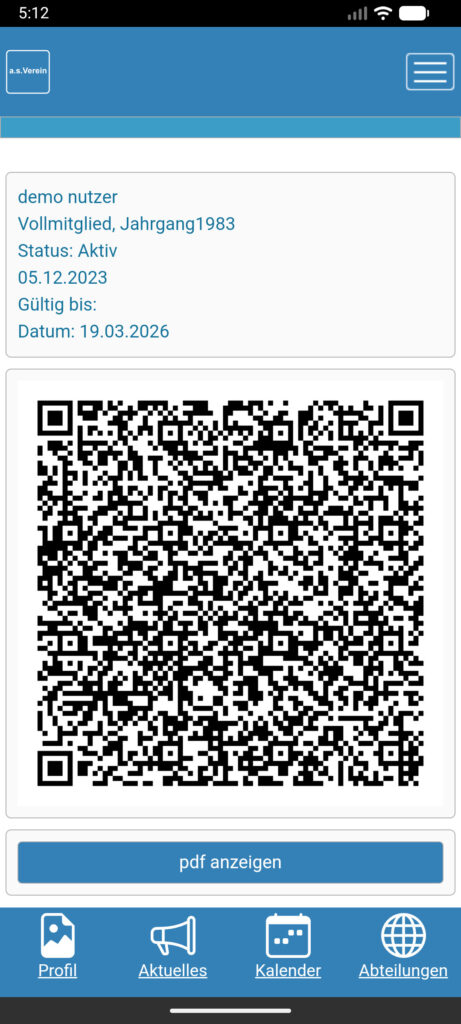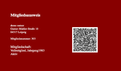 Damit können Sie sich z.B. zu Veranstaltungen als Vereinsmitglied ausweisen und über den QR-Code können Sie die entsprechenden Mitgliedsdaten abfragen und überprüfen.