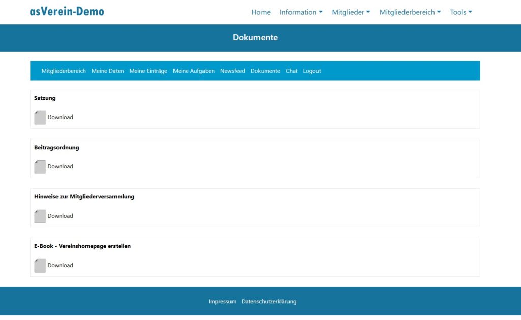 Erstellen Sie dazu eigene Seiten für z.B. Dokumente, Protokolle, Events und Bilder und setzen dafür bestimmte Rechte nach Benutzer-Rollen und Mitgliedschaften.