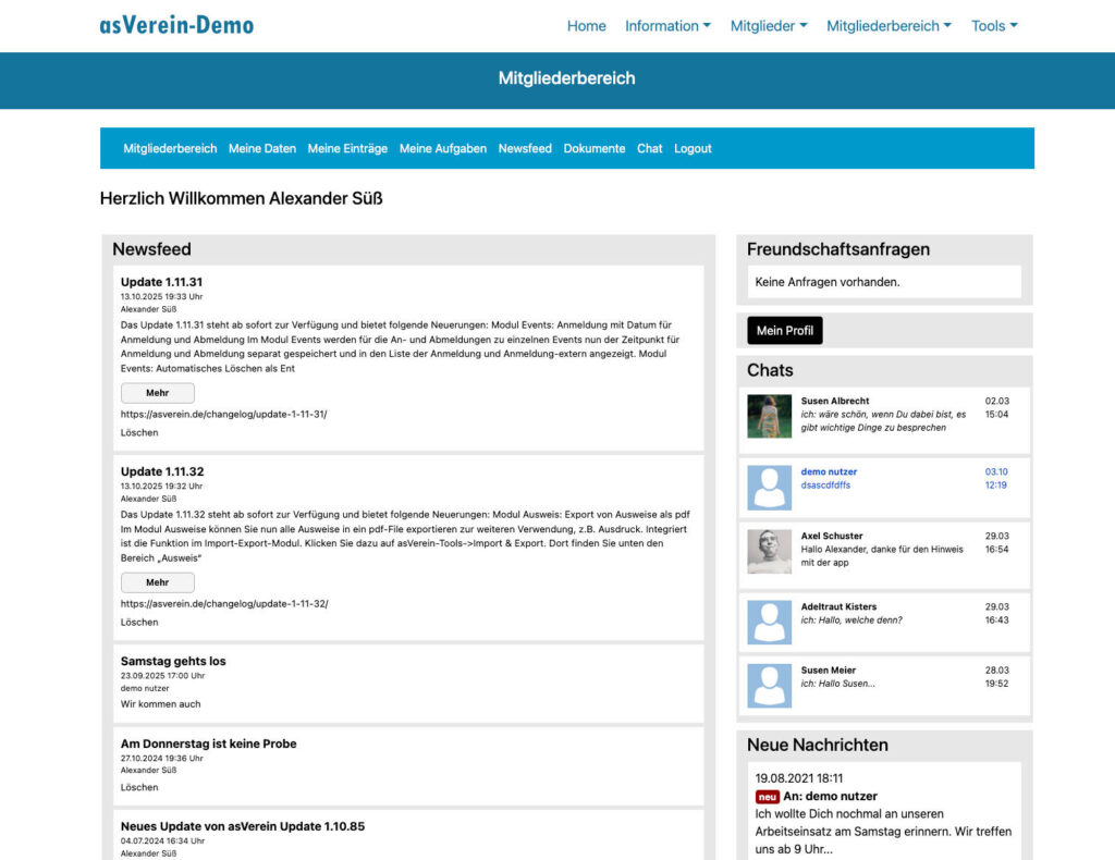 asVerein bietet für den Mitgliederbereich auch verschiedene Community-Funktionen, damit Mitglieder miteinander kommunizieren und sich austauschen können.